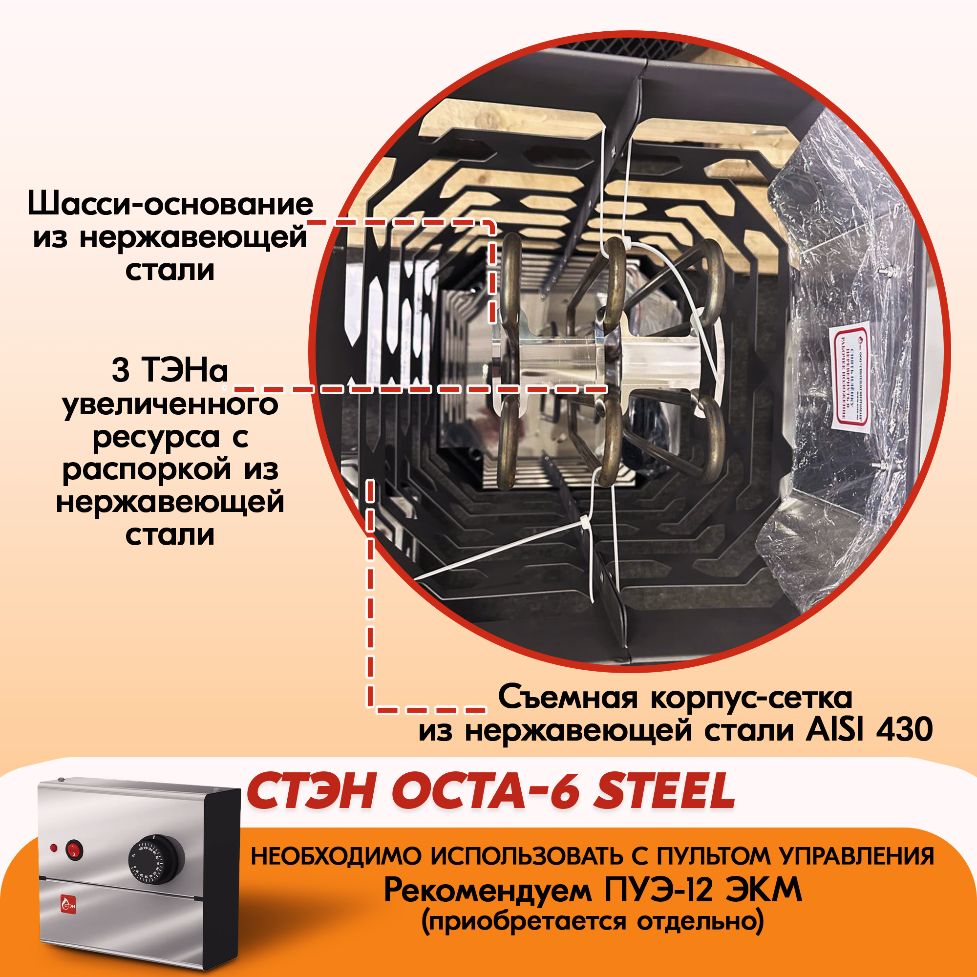 Электрическая каменка СТЭН ЭКМ 6 Octa steel в Нефтекамске | Доставка по России