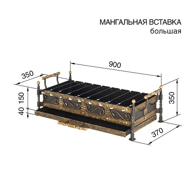 Мангал (гриль-вставка, мангальная вставка) предназначен для установки в портал кирпичного печного комплекса барбекю для приготовления пищи на углях вне помещений, на открытом воздухе.